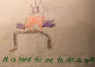 When there is a child in the classroom who experiences difficulty coming to meeting or sitting still, or children have outbursts and behavioral issues, we often skirt around these difficulties with the entire group. Using a book like this one to foster conversation allows us to say, "It is hard for Cheri to sit at meeting but it is easy for her to add lots of details to her pictures." "It is hard for Michael to control his body all the time but easy for him to do the monkey bars." Here are some examples from drawings children ages 3-5 did after hearing this book and being asked,